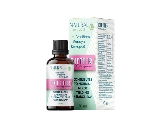 Dietter е иновативен натурален продукт под формата на капки, разработен специално за хора, които искат да отслабнат по здравословен и безопасен начин. Формулата на продукта се основава на внимателно подбрани растителни компоненти, които работят в синергия за постигане на оптимални резултати.